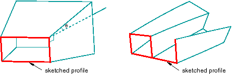 You define the draft angle for an extrusion with draft or the center of twist and the pitch (the extrusion distance in which a 360° twist occurs) for an extrusion with twist. Select from the main menu bar to create this type of feature.
