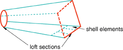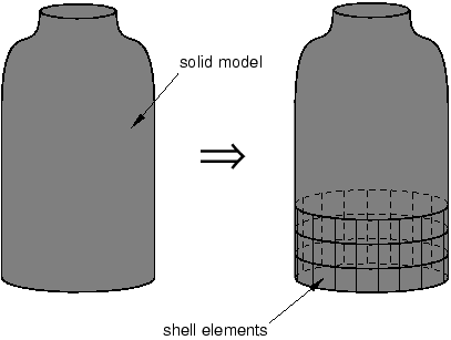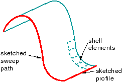 Many of the figures illustrate how the shell features might later be meshed. You can mesh a shell feature using: