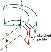 The dimension h represents the translation of the sketched profile due to pitch; h would be equal to the pitch if the part was revolved a full 360°. Select from the main menu bar to create this type of feature.