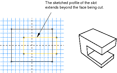 Figure 1. The sketched profile of a slot should extend beyond any surfaces that are cut.