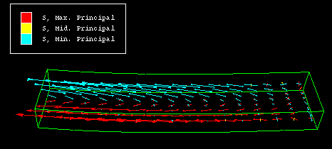 Each vector and tensor result value appears as an arrow drawn at the location in the model where the result was obtained or the attribute is located; arrows representing nodal quantities appear at nodes, and arrows representing integration point quantities appear at integration points. (You cannot create a symbol plot of element quantities stored at nodes.) For example, a symbol plot of the principal stress tensor is shown in Figure 1. Figure 1. Symbol plot of principal stress.