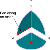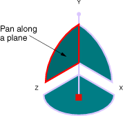 The 3D compass allows you to pan the view of a model using two different methods: you can pan along a specified axis, or you can pan within a specified plane.