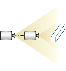 The dragging action must start in the viewport, but you can continue to drag within the limits of your monitor. You can also drag repeatedly to achieve the desired view. The magnify tool recognizes only the horizontal (for the default configuration) or vertical (for nondefault configurations) component of your dragging motion, as indicated by the rubberband line. Consequently, you can achieve finer control by dragging diagonally across the screen, since this results in a smaller component of the cursor's motion in the effective direction than dragging the same distance along the effective direction. Using the default mode of the magnify tool, as its name suggests, magnifies the view; as shown in Figure 1, the camera does not move with respect to the objects in the view. The magnification is caused by changing the field-of-view angle, the same method you use when changing the zoom on a stationary camera. Figure 1. Magnifying the view.