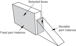 Select a planar face from the part or model instance that will move and a planar face from the instance that will remain fixed, as shown in the following figure: