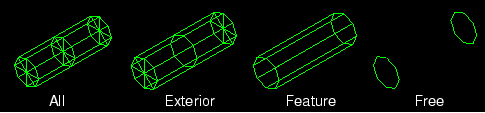 Displays only edges on the exterior of the model.