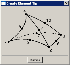 In the viewport, select the nodes that will define the element. You must select the required number of nodes for the element shape specified in the previous step. In addition, you must select the nodes in a specific order. From the right of the prompt area, click Tip to see a figure of the element shape and connectivity. For example, Abaqus/CAE displays the following figure when you are creating a 10-node tetrahedral element: