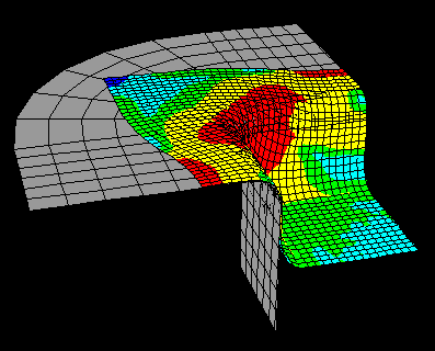 For example, the contour plot in Figure 1 shows the von Mises stress generated when a blank sheet is deformed using a die and punch (the punch is not shown in the figure). In this case the color gray was selected for elements with no results. The die elements appear gray because the die is a rigid surface for which no stress results exist.