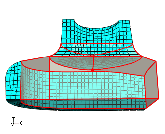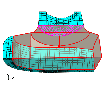 Select the semi-circular face at the bottom of the protrusion, colored magenta in Figure 1, as the source side of the first bottom-up mesh; and click Done in the prompt area.
