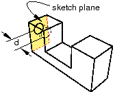 Click Blind to cut a circular hole that extends from a selected face in a selected direction but only to a specified depth. A blind cut is illustrated in the following example:
