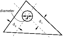 You cut a circular hole by specifying the distance from two selected straight edges and specifying the diameter of the hole, as shown in the following figure: