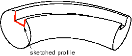 You can define a sweep profile either by sketching a sweep profile using the Sketcher or by selecting one of the faces in your model as the profile. The sweep profile is initially perpendicular to the path; you can keep this orientation constant along the entire sweep path, or you can keep the sweep profile perpendicular to the sweep path as it is swept along its length.