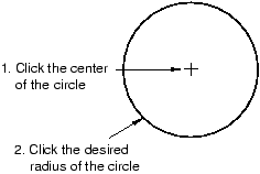 Tip: If necessary, you can use the text box in the prompt area to enter the precise coordinates of the center and the point on the circumference of the circle. For more information on precisely defining the circle, see Specifying precise geometry.