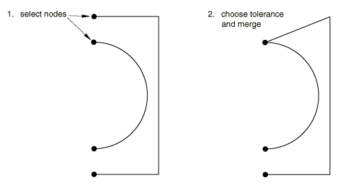 The Merge tool is intended only for closing small gaps. Merging edges to close larger gaps may change the sketch geometry significantly. If you want to move elements in a sketch over a large distance, use the drag tool to move vertices in your sketch to a new location. For more information, see Dragging Sketcher objects.