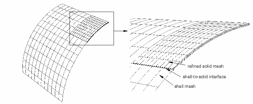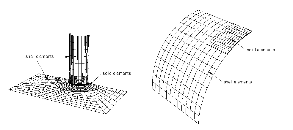 • is most useful when local modeling should use a full three-dimensional analysis but other parts of the structure can be modeled as shells;