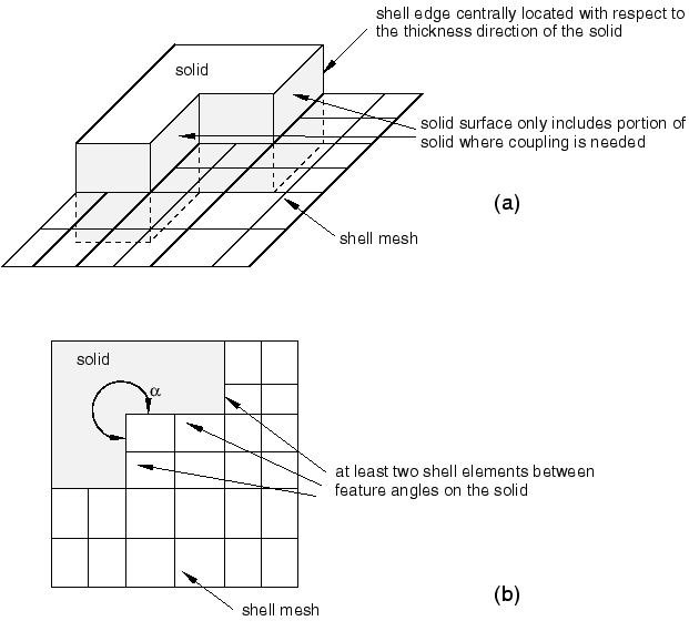 • does not require any alignment between the solid and shell element meshes; and