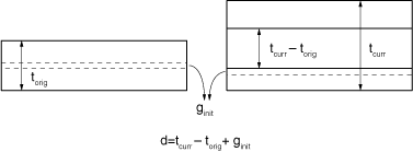 ![]() Tangential flowTangential flow in a cohesive element will transition from Darcy flow to Poiseuille flow as damage in the element initiates and evolves. The transition is designed to approximate the changing nature of fluid flow through an initially undamaged porous material (Darcy flow) to flow in a crack (Poiseuille flow) as the material is damaged. You must specify the fluid constitutive response for both types of flow. Gap openingThe tangential flow equations for the cohesive element are solved within a gap along the length of the element. The gap opening, , is defined as where and are the current and original cohesive element geometrical thicknesses, respectively; is the initial gap opening, which has a default value of 0.002; and represents the physical crack opening that is used for Poiseuille flow once the element is damaged. A schematic illustration is shown in Figure 2. is not a physical quantity. It is used by Abaqus/Standard to ensure that the flow equations can be solved robustly when the physical gap is closed (i.e., ). As increases, the effect of on the flow equations is diminished, as described in Transition from Darcy flow to Poiseuille flow. Figure 2. Cohesive elements gap opening.
