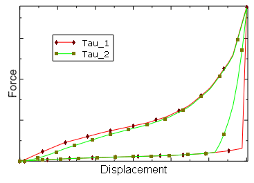 ![]() Figure 3 shows the loading/unloading response of a connector element for two different relaxation times and with . The larger the relaxation time, the longer it takes to achieve the specified loading/unloading response for the applied deformation rate. Figure 3. Rate-dependent loading/unloading.