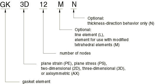 ProductsAbaqus/StandardAbaqus/CAE Naming conventionThe gasket elements used in