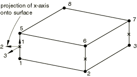 ![]() For three-dimensional area and three-dimensional link elements, the local 2- and 3-directions are normal to the local 1-direction (see Figure 4) and are defined by the standard Abaqus convention for local directions on surfaces in space (see Conventions). Figure 4. Local directions for three-dimensional area and three-dimensional link