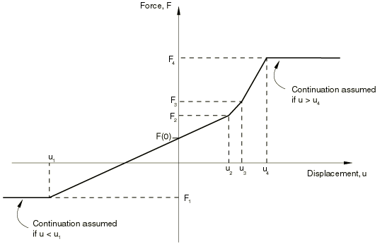 The terms “force” and “displacement” are used throughout the description of spring elements. When the spring is associated with displacement degrees of freedom, these variables are the force and relative displacement in the spring. If the springs are associated with rotational degrees of freedom, they are torsional springs; these variables will then be the moment transmitted by the spring and the relative rotation across the spring.