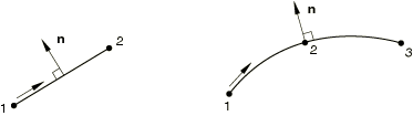 Element normal definitionFor two-dimensional trusses the positive outward normal, , is defined by a 90° counterclockwise rotation from the direction going from node 1 to node 2 or node 3 of the element, as shown. Defining the elements section propertiesYou use a solid section definition to define the section properties. You must associate these properties with a region of your model. Input File Usage SOLID SECTION, ELSET=name where the ELSET parameter refers to a set of truss elements. Abaqus/CAE Usage Property module: Create Section: select Beam as the section Category and Truss as the section Type : select regions Defining the cross-sectional area of a truss elementYou can define the cross-sectional area associated with the truss element as part of the section definition. If you do not specify a value for the cross-sectional area, unit area is assumed. When truss elements are used in large-displacement analysis, the updated cross-sectional area is calculated by assuming that the truss is made of an incompressible material, regardless of the actual material definition. This assumption affects cases only where the strains are large. It is adopted because the most common applications of trusses at large strains involve yielding metal behavior or rubber elasticity, in which cases the material is effectively incompressible. Therefore, a linear elastic truss element does not provide the same force-displacement response as a linear SPRINGA spring element when the axial strain is not infinitesimal. Input File Usage SOLID SECTION, ELSET=name cross-sectional area Abaqus/CAE Usage Property module: Create Section: select Beam as the section Category and Truss as the section Type: Cross-sectional area: cross-sectional area Assigning a material definition to a set of truss elementsYou must associate a material definition with each solid section definition. No material orientation is permitted with truss elements. Input File Usage SOLID SECTION, MATERIAL=name Any value given to the ORIENTATION parameter on the SOLID SECTION option will be ignored by truss elements. Abaqus/CAE Usage Property module: Create Section: select Beam as the section Category and Truss as the section Type: Material: name Using truss elements in large-displacement implicit analysisTruss elements have no initial stiffness to resist loading perpendicular to their axis. If a stress-free line of trusses is loaded perpendicular to its axis in Abaqus/Standard, numerical singularities and lack of convergence can result. After the first iteration in a large-displacement implicit analysis, stiffness perpendicular to the initial line of the elements develops, sometimes allowing an analysis to overcome numerical problems. In some cases loading the truss elements along their axis first or including initial tensile stress can overcome these numerical singularities. However, you must choose the magnitude of the loading or initial stress such that the final solution is unaffected. |
