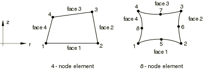 Node ordering and face numbering on elementsThe node ordering in the first r–z