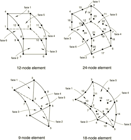 Table 1. 12-node and 24-node cylindrical element facesFace 1