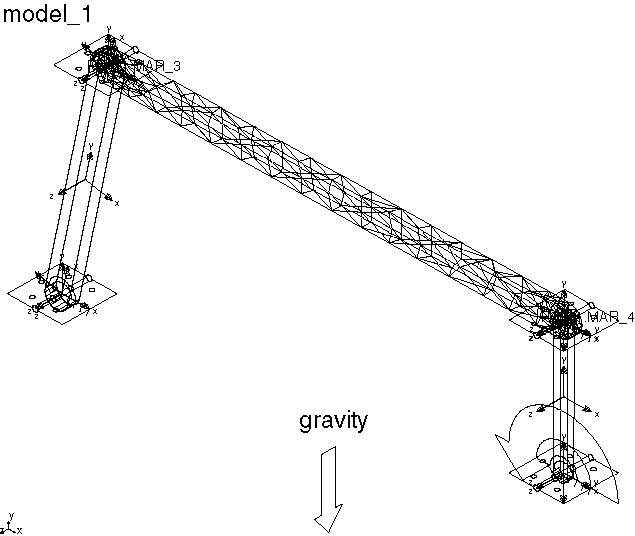 Results and discussionThe primary difference between the beam model and the solid model is that the beam model uses only 10 B31 elements (11 nodes). Because the beam elements have both displacement and rotational degrees of freedom at their nodes, no multi-point constraints are needed to connect the link to other MSC.ADAMS components. The rest of the model is essentially identical to the solid model of the link. The first eight nonzero frequencies for the unconstrained model are shown in Table 3. These frequencies are close to those of the solid model of the link. Although the computational cost in Abaqus is much less for this model than for the solid model, the computational costs in MSC.ADAMS for the two models are very similar because both models have 32 modes (12 constraint modes and 20 fixed-interface vibration modes). Input filesCase 1 Link modeled with solid elements