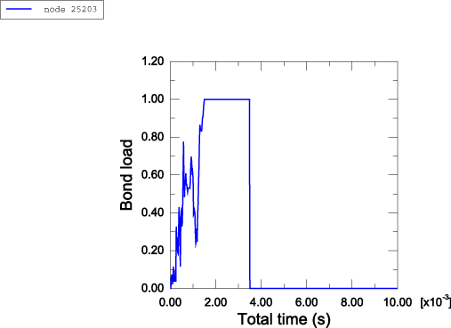 ![]() Figure 7. Time histories of the load on spot weld node 25203 relative to the failure load.