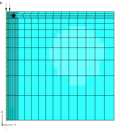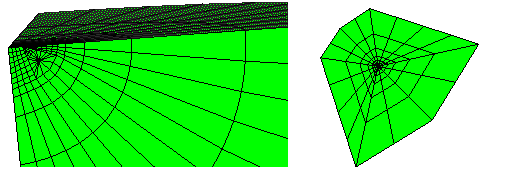 ![]() Figure 6. Case 2: Partitions around the crack line. The smaller inner ring is