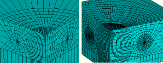 ![]() Figure 11. Case 4: Full three-dimensional global model and submodel meshes around