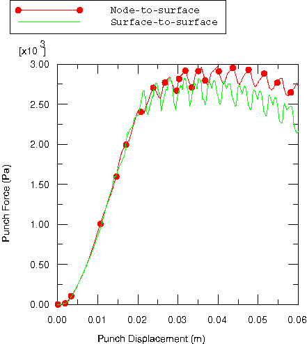 ![]() Figure 5. Punch force versus punch displacement using the node-to-surface