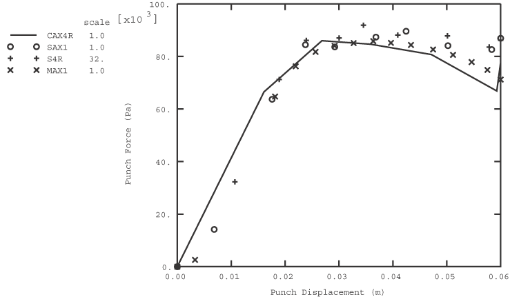 ![]() Figure 6. Comparison of punch force versus punch displacement with S4R elements