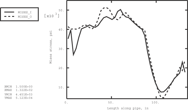 ![]() Figure 7. Mises stress distribution along the length of the piping