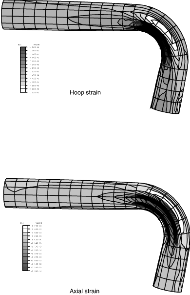 ![]() Figure 5. Strain distribution on the outside surface: closing moment