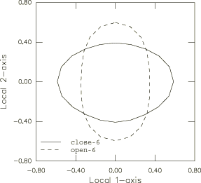 ![]() Figure 6. Ovalization of the ELBOW31 cross-sections for 6 Fourier modes: opening and closing displacement cases.