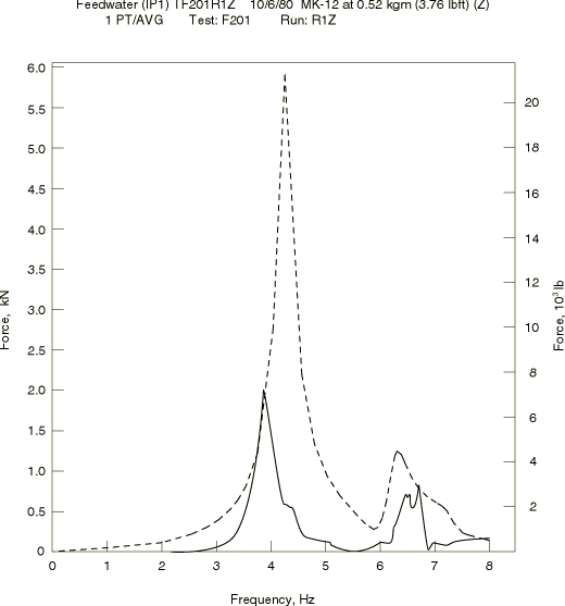 ![]() Figure 9. Comparison of force in spring support FW–R–21 between experimental steady-state results (solid line) and Abaqus (dashed line).
