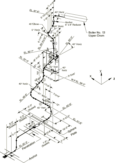 FiguresFigure 1. Indian Point boiler feedwater line: modern supports, Configuration 1.