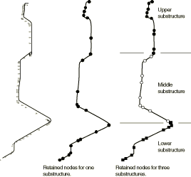 ProductsAbaqus/Standard The pipeline is the Indian Point Boiler Feedwater Pipe fitted with modern supports, as shown in Figure 1. This pipeline was tested experimentally in EPRI's full-scale testing program. The model corresponds to Configuration 1 of the line in Phase III of the testing program. The experimental results are documented in EPRI Report NP–3108 Volume 1 (1983). We first verify that the geometric/kinematic model is adequate to simulate the dynamic response accurately. For this purpose we compare predictions of the natural frequencies of the system using a coarse model and a finer model, as well as two substructure models created from the coarse mesh. These analyses are intended to verify that the models used in subsequent runs provide accurate predictions of the lower frequencies of the pipeline. We then perform linear dynamic response analysis in the time domain for one of the “snap-back” loadings applied in the physical test (EPRI NP–3108, 1983) and compare the results with the experimental measurements. The linear dynamic response analysis results are also compared with the results of direct integration analysis (integration of all variables in the entire model, as would be performed for a generally nonlinear problem). This is done primarily for cross-verification of the two analysis procedures. These snap-back response analyses correspond to a load of 31136 N (7000 lb) applied at node 25 in the z-direction, with the pipe filled with water. This load case is referred to as test S138R1SZ in EPRI NP–3108. We also compute the pipeline's response in the frequency domain to steady excitation at node 27 in the z-direction. Experimental data are also available for comparison with these results. Geometry and modelGeometrical and material properties are taken from EPRI NP–3108 (1983). The supports are assumed to be linear springs for the purpose of these linear analyses, although their actual response is probably nonlinear. The spring stiffness values are those recommended by Tang et al. (1985). The pipe is assumed to be completely restrained in the vertical direction at the wall penetration. In the experimental snap-back test used for the comparison (test S138R1SZ), the pipe is full of water. The density of the general beam section is, therefore, adjusted to account for the additional mass of the water by computing a composite (steel plus water) mass per unit length of pipe. The pipeline is modeled with element type B31. This is a shear flexible beam element that uses linear interpolation of displacement and rotation between two nodes, with transverse shear behavior modeled according to Timoshenko beam theory. The element uses a lumped mass matrix because this provides more accurate results in test cases. The coarse finite element model uses at least two beam elements along each straight run, with a finer division around the curved segments of the pipe to describe the curvature of the pipe with reasonable accuracy. Separate nodes are assigned for all spring supports, external loading locations, and all the points where experimental data have been recorded. The model is shown in Figure 2. This mesh has 74 beam elements. In typical piping systems the elbows play a dominant role in the response because of their flexibility. This could be incorporated in the model by using the ELBOW elements. However, ELBOW elements are intended for applications that involve nonlinear response within the elbows themselves and are an expensive option for linear response of the elbows, which is the case for this study. Therefore, instead of using elbow elements, we modify the geometrical properties of beam elements to model the elbows with correct flexibility. This is done by calculating the flexibility factor, k, for each elbow and modifying the moments of inertia of the beam cross-sections in these regions. The flexibility factor for an elbow is a function of two parameters. One is a geometric parameter, , defined as where t is the wall thickness of the curved pipe, R is the bend radius of the centerline of the curved pipe, r is the mean cross-sectional radius of the curved pipe, and is Poisson's ratio. The other parameter is an internal pressure loading parameter, . For thick sections (like the ones used in this pipe), has negligible effect unless the pressures are very high and the water in this case is not pressurized. Consequently, the flexibility factor is a function of only. For the elbows in this pipeline 0.786 for the 203 mm (8 in) section and 0.912 for the 152 mm (6 in) section. The corresponding flexibility factors obtained from Dodge and Moore (1972) are 2.09 and 1.85. These are implemented in the model by modifying the moments of inertia of the beam cross-sections in the curved regions of the pipeline. Abaqus provides two different options for introducing geometrical properties of a beam cross-section. For general beam sections all geometric properties (area, moments of inertia) can be given without specifying the shape of the cross-section. The material data, including the density, are given on the same option. Alternatively, the geometrical properties of the cross-section can be given by using a beam section. With this option the cross-section dimensions are given, and Abaqus calculates the corresponding cross-sectional behavior by numerical integration, thus allowing for nonlinear material response in the section. When this option is used, the material properties—including density and damping coefficients—are introduced in the material definition associated with the section. This approach is more expensive for systems in which the cross-sectional behavior is linear, since numerical integration over the section is required each time the stress must be computed. Thus, in this case we use a general beam section. To verify that the mesh will provide results of adequate accuracy, the natural frequencies predicted with this model are compared with those obtained with another 