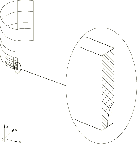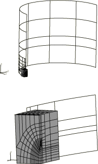 ![]() Figure 5. Solid submodel superimposed on shell global model.