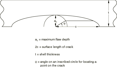 ![]() Figure 2. Schematic of a semi-elliptical surface crack.