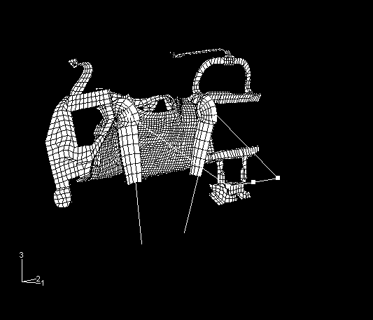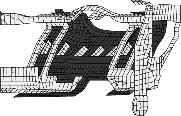 ![]() Figure 2. Initial configuration of the knee bolster model (view from outboard and behind the driver).