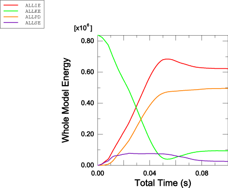 ![]() Figure 4. Time histories of the whole model: internal energy, kinetic energy, recoverable strain energy, and plastic dissipation.
