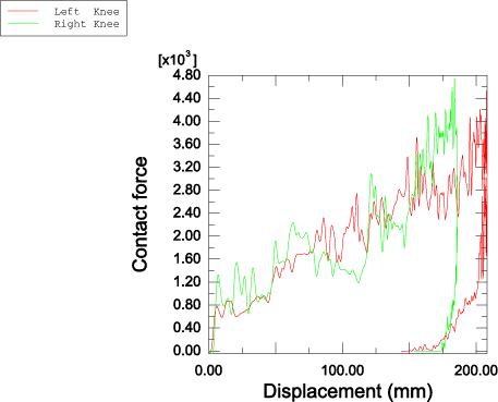 ![]() Figure 5. Front leg reaction forces measured against impact displacement.