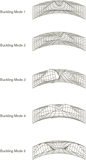 ![]() Figure 6. Buckling modes, element types S4R5, S9R5, and STRI65.