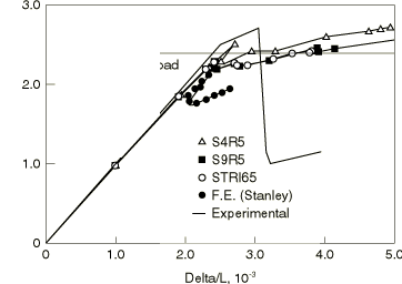 ![]() Figure 8. Postbuckling deformations: 10% h imperfection with S4R5.