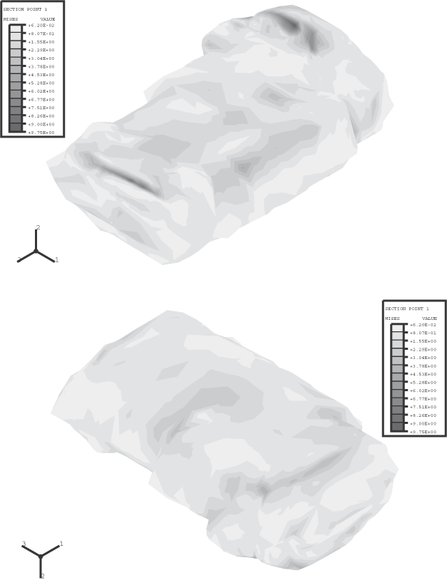 ![]() Figure 4. Mises stress solution for uniform shell thickness analysis.