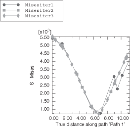 ![]() Figure 5. Mises stress along a path near the vessel-to-head interface.
