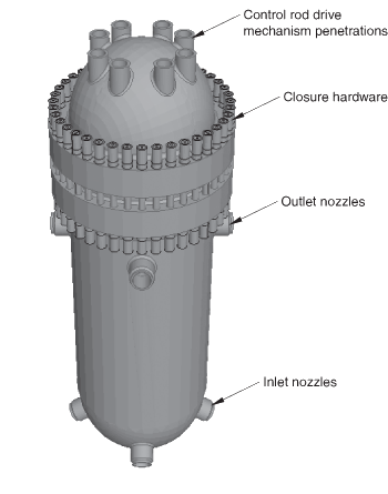 ProductsAbaqus/StandardAbaqus/CAE Application descriptionThe vessel assembly forms the pressure boundary surrounding the fuel core. This example considers the strength of sustaining the following loading conditions: