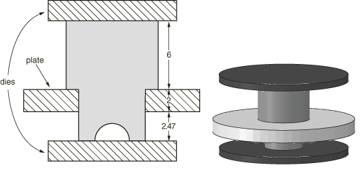 ![]() Figure 3. Rivet assembled with the forming tools. All dimensions are in millimeters.